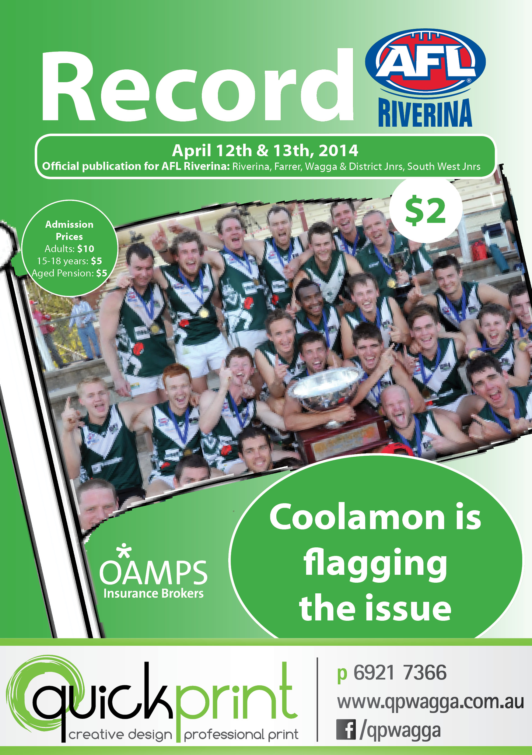 The AFL Riverina Record captures all four leagues – with club lists, notes, photo’s in the senior and juniors and much more.
