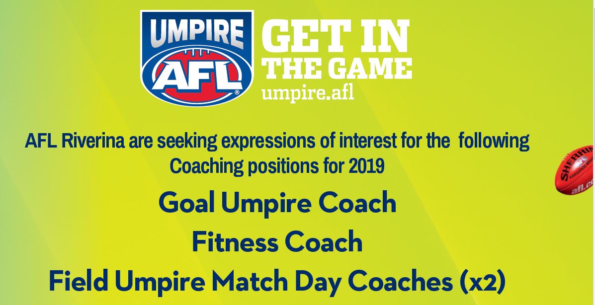AFL Riverina are seeking expressions of interest for the following Coaching positions for 2019:
