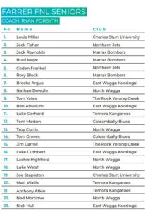 Farrer FNL and Riverina FNL Representative Teams Announced