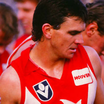 He crossed to Sydney in 1986 as part of the Swans’ recruiting spree and although hampered by injury, he managed a further 56 games before retiring in 1990.