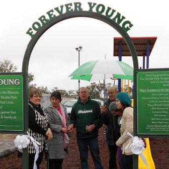 “This playground is dedicated to the memory of all young sports people at Kindra Park who have tragically lost their lives, may they live on in our memories playing their games that they loved with their families and friends at Forever Young.”