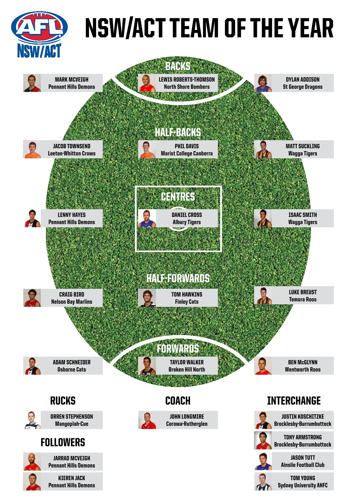 - Tony Armstrong (Sydney Swans) – Brocklesby-Burrumbuttock Saints
