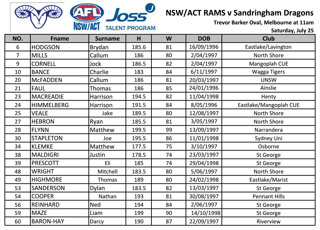 NSW/ACT RAMS vs. SANDRINGHAM DRAGONS