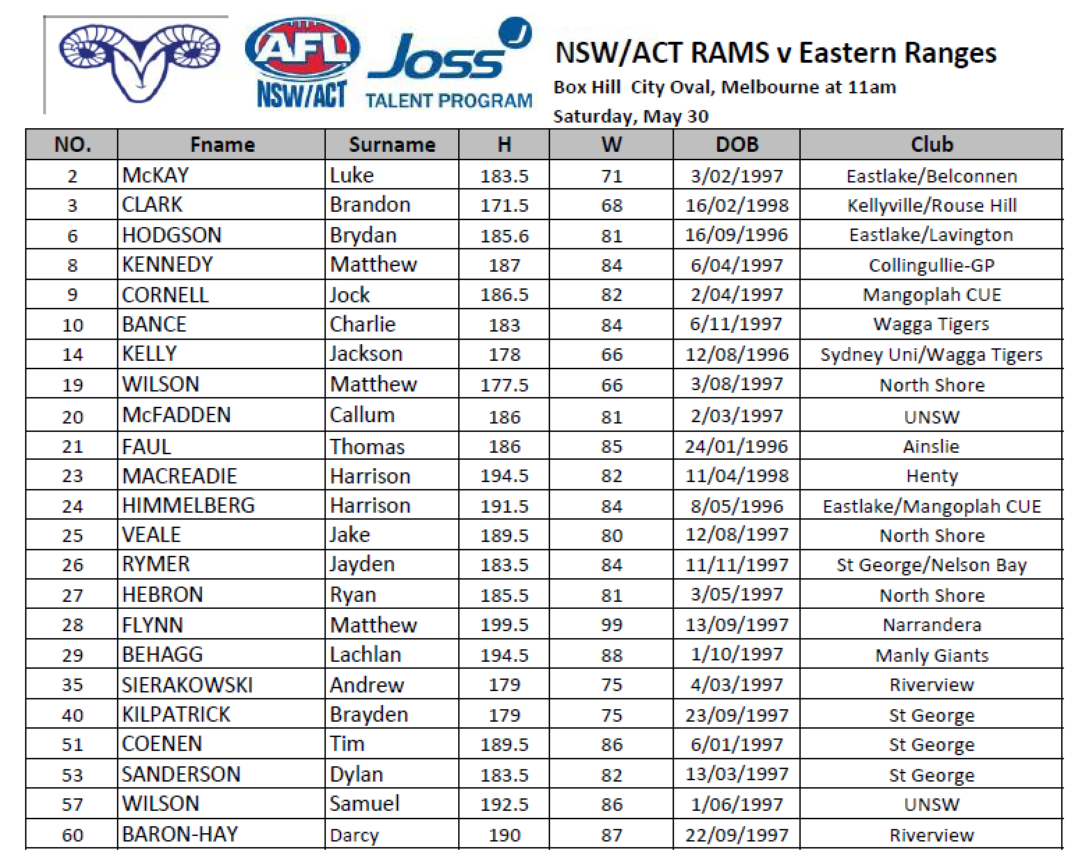 Round 9 TAC Cup NSW/ACT RAMS v Eastern Ranges
