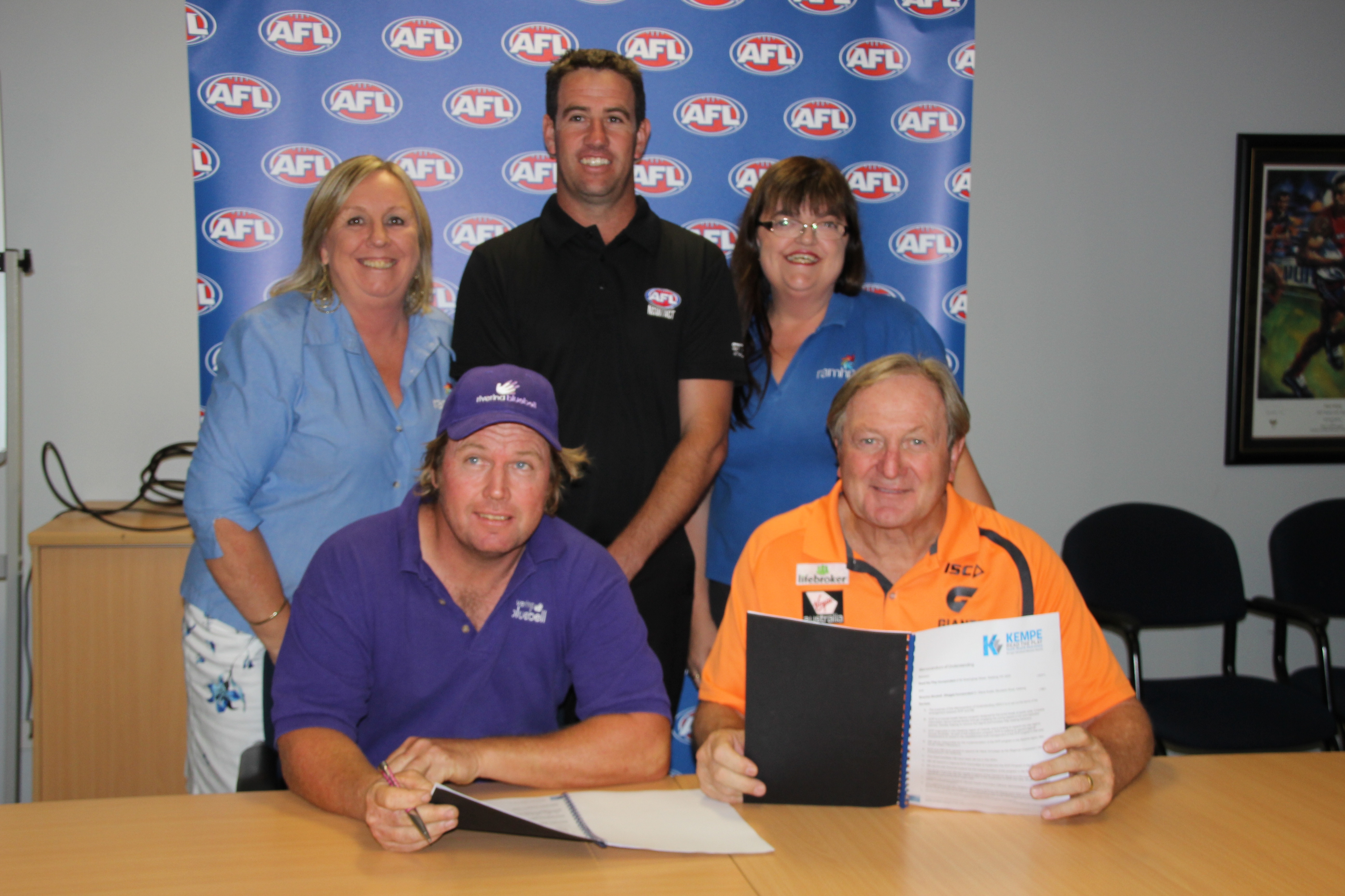 The Rural Adversity Mental Health Program, Riverina Bluebell and AFL NSW/ACT have partnered to pilot RTP in the 2014 Australian Football league season. A Memorandum of Understanding was signed in Wagga Wagga on 12 February in the presence of former AFL Greater Western Sydney coach Kevin Sheedy.