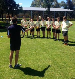 From Maher Oval we headed over to West Wyalong for another session with the Northern Riverina Club Umpiring group. The session was similar to the morning one but in this instance both Scott and Tim were exposed to a league that relies heavily on Club Umpires and the challenges they face including training and umpire education due to the large geographical area of the league. Scott and Tim were surprised to hear that some umpires travel over 4 hours to officiate a game of footy. Monday saw the roadshow travel to Ardlethan central School and Wade High School in Griffith. Both these school visits aimed to promote umpiring as an alternative to playing and also to educate the students to respect umpires and the role they play in a football match. At the end of each session the students got to practice their boundary throw in and centre bouncing, often with great success. Hopefully we can increase the awareness of umpiring in those schools with the introduction of the School Based Umpiring Academies which has worked so successfully in Wagga Wagga.
