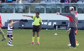 Abdullah is a student at Kooringal High School in Wagga and enrolled in the School Based Umpire Academy I run in Term 1 2015 at the school. He showed real interest in umpiring and was very eager to get involved in umpiring in the Wagga District Junior Football League. He debuted Under 10’s after 3 weeks in the school academy. He re-enrolled in Term2 of the academy and has now moved up to Under 12’s level such is his enthusiasm, willingness to listen and improvement in knowledge of the laws of the game. He regularly put his hand up to umpire school football including Paul Kelly Cup and Tony Lockett Shield. His interest in umpiring these gala days has also assisted in his overall improvement over the course of this year. He currently also plays football for Wagga Swans which also gives him a good foundation for being able to read the play. He was rewarded with the trip to Canberra because of his willingness to self improve, attendance at training and his overall enjoyment for umpiring. He loved to experience on Saturday “being right in front of the grandstand” and he is looking forward to umpiring the rest of the year and maybe getting a final. He really is a great kid and what you see on the video is exactly what you see from Abdallah all the time. His parents accompanied him to Canberra on the weekend and are also excited by how much he has enjoyed his umpiring. Abdallah has a brother Abdirahman who is also eager to get involved in umpiring but has to wait until next year as he is only 12 years old….Exciting times ahead!