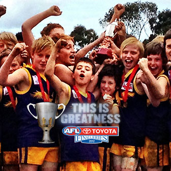 The AFL is running a promotion called Your Moment of Greatness that gives all footy clubs a chance for a photo of their team winning the 2012 Premiership to be shown on the big screen during 2012 Toyota AFL Finals and Grand Final Day.